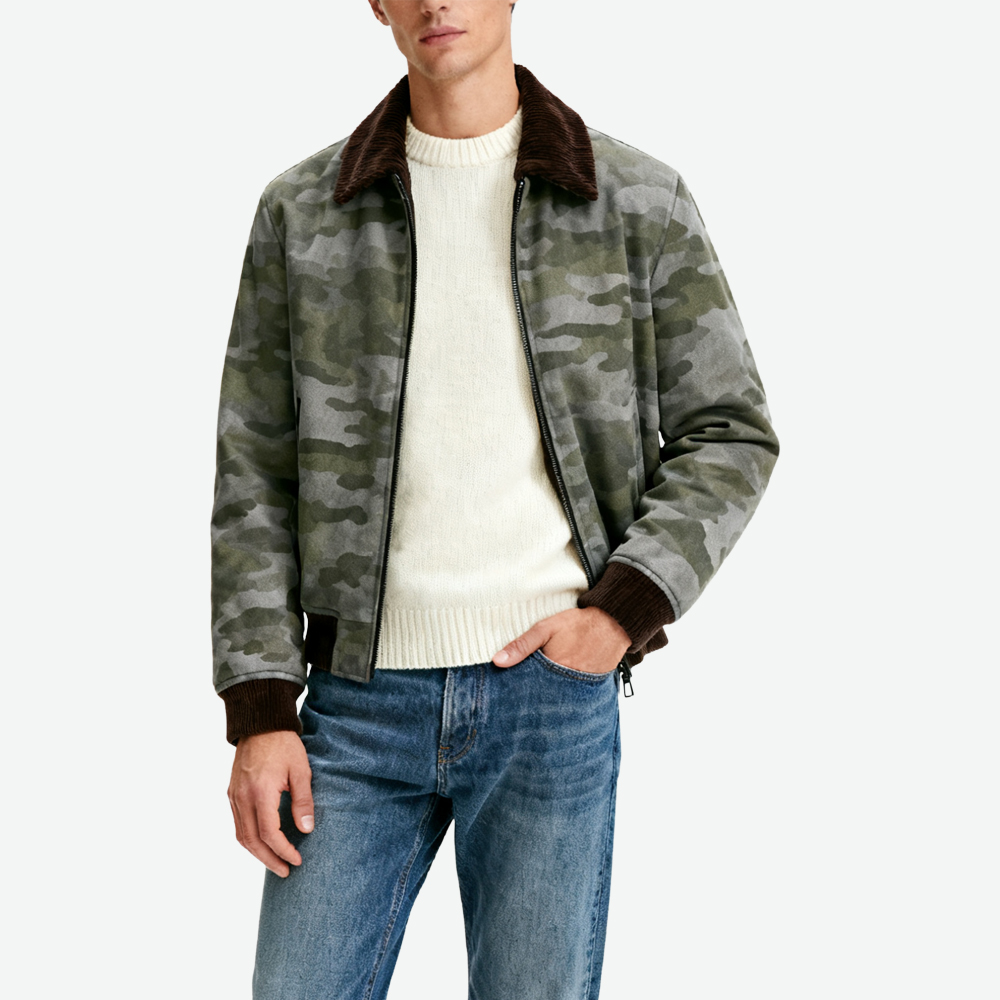 Fur-Collar Decor Camo Men’s Edgy Retro Outerwear