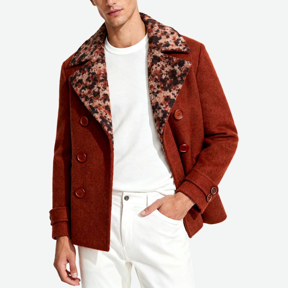 Leopard-Collar Double-Breasted Men’s Retro High-End Outerwear