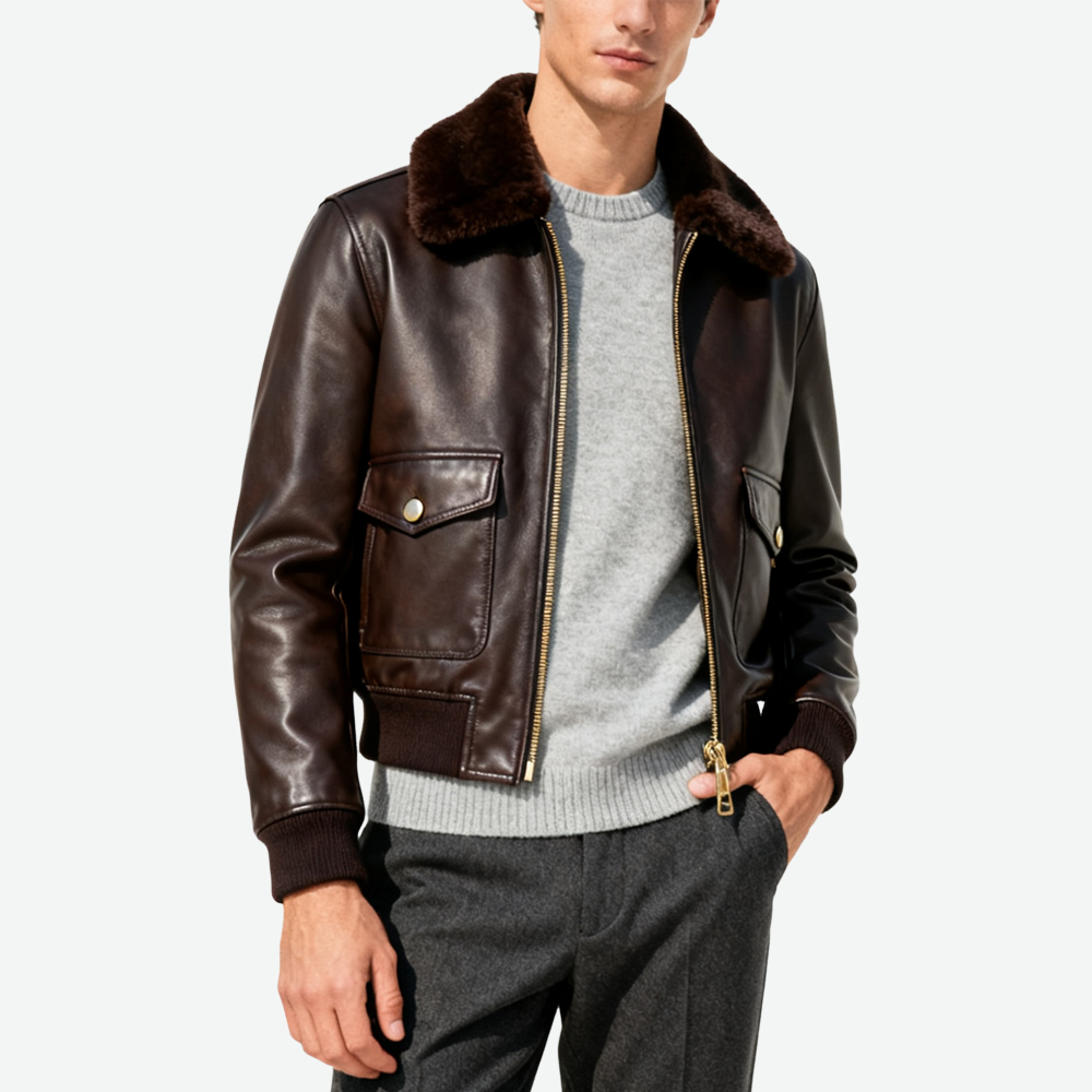 Fur-Collar Exclusive Bomber Jacket Men’s Edgy Retro Outerwear