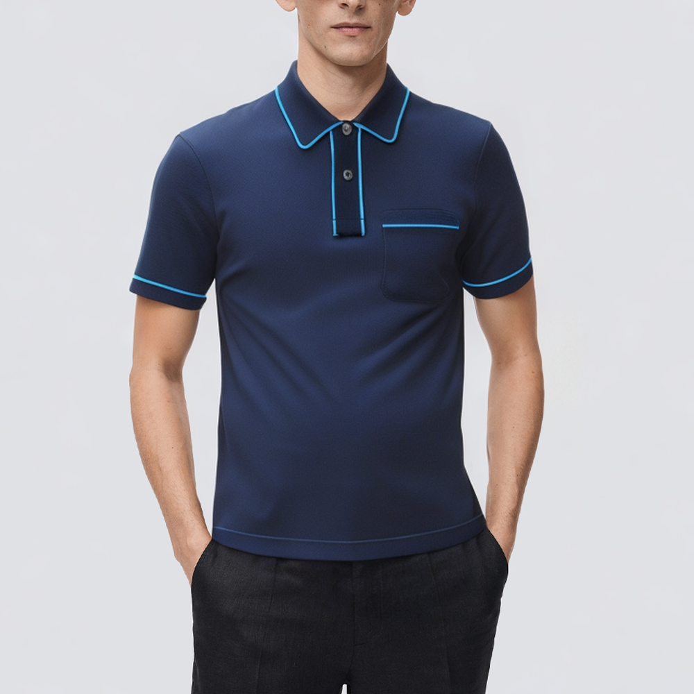 Description This men’s polo shirt combines classic design with modern details to create an everyday piece that’s both stylish and practical. The contrasting collar adds dimension, the ribbed trim adds texture, and the chest pocket details add practicality while showing simple and neat style. The button placket design makes it easy to put on and take off, whether it is…