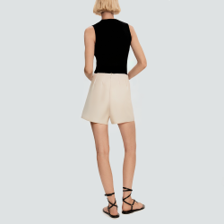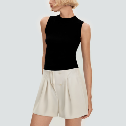With its delicate pleated design and front button trim, these shorts exude elegance and style. The straight cut creates a clean line and fits all body shapes for a comfortable fit. The back zipper design makes it easy to put on and take off, and the side pockets increase practicality, making it easy to match and show off your chic taste whether it is daily commuting or leisure travel.