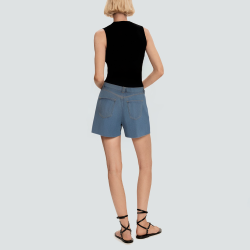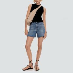 These women’s denim shorts feature a high waist and a zipper closure for a simple yet stylish look. The delicate beading adds a touch of unique charm and makes the overall look more fashionable. The side pockets not only increase practicality, but also give the shorts a more layered feel. The ripped hem has a slightly retro feel, highlighting the youthful and free street style, which is perfect for showing personal style.