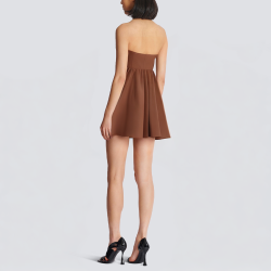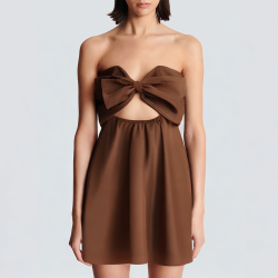 This short dress features an off-the-shoulder design that strikes the perfect balance of elegance and sexiness. The front bow tie adds a playful and sweet touch, giving the dress its own unique personality. The practical pocket design on the skirt is convenient and enhances the casual feel, while the pleated hem design adds layering and movement to the skirt, perfect for a relaxed and elegant look.