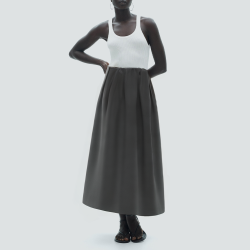 This long skirt is a versatile piece for everyday wear with its simple yet stylish design. The solid pleated skirt adds a sense of layering to the overall look, and the unique A-line cut highlights the slender figure, which is both elegant and energetic. The elastic waist design provides a comfortable wearing experience and adapts to the needs of different body types. With practical side pockets, it is convenient and enhances the design sense. The simplicity is not lacking in the charm of details.
