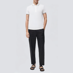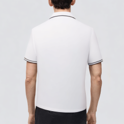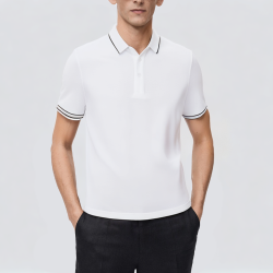This men’s polo shirt is highlighted by exquisite embroidered stripes, showing a taste of low-key yet detailed. The classic polo collar and button placket design not only highlight the traditional elegance, but also add comfort and flexibility. The short sleeve design makes it suitable for spring and summer, and the straight hem cut has a better slimming effect, showing the capable and neatness of modern men.
