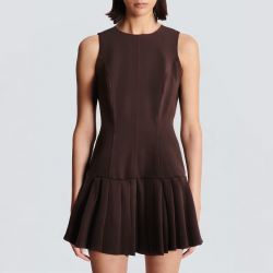 Designed with simple elegance in mind, this short dress is the perfect combination of comfort and style. The crew neckline shows fresh and neat lines, and the zipper placket makes it easy to put on and take off, adding practicality. The sleeveless design will keep you fresh in the warm season. The pleated design at the hem adds a sense of flow and layering, which is elegant and dynamic, suitable for all occasions.