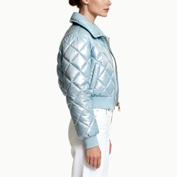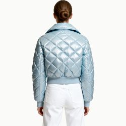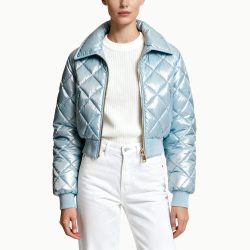 Shiny Quilted Diamond Pattern Zip Women’s Fashion Outerwear