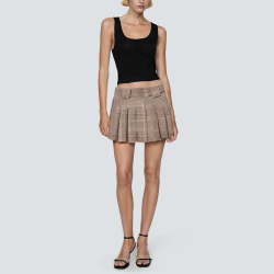 This short skirt features a classic plaid pattern, which is stylish and retro. The A-line cut and pleated hem add layering and movement to the overall look, highlighting the elegance and vitality of women. The zipper design is not only easy to put on and take off, but also adds a touch of fashion. Whether paired with a shirt or a knitted sweater, this skirt can easily adapt to various occasions and become an indispensable item in your wardrobe.