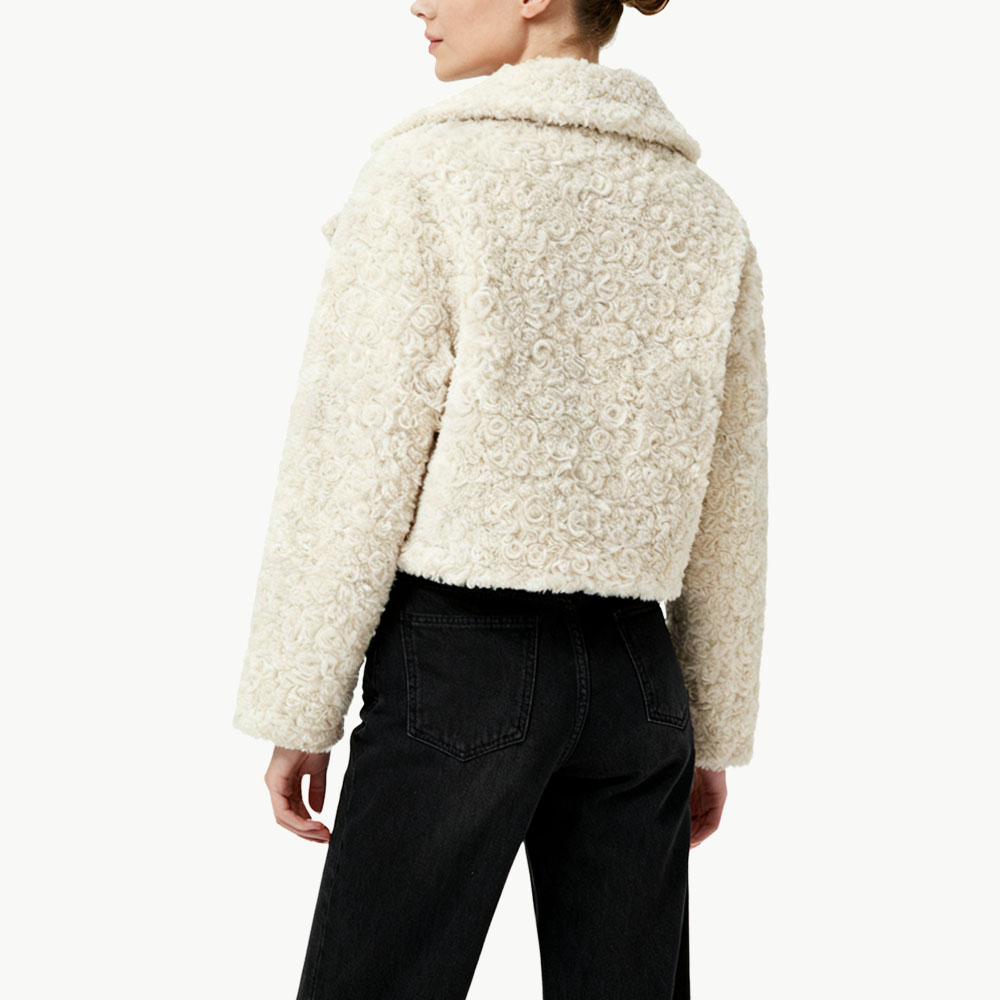 The three-dimensional cut flatters the figure, emphasizing curves while maintaining freedom of movement. The naturally fitted shoulder line and flowing sleeves create a harmonious overall proportion, creating a sophisticated yet feminine look.